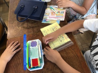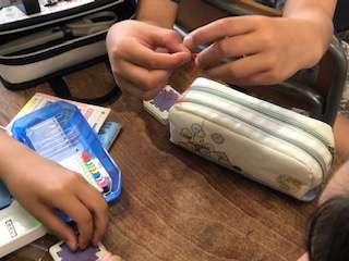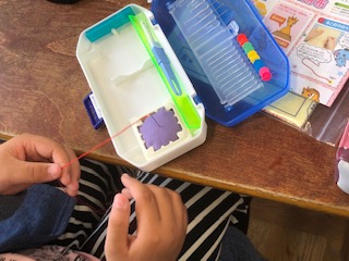 裁縫道具を出して、結び方を練習しました。なかなかむずかしいようです。
