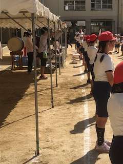 体操の時は代表が前に立ちます。