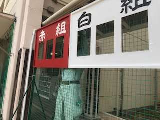 朝には得点板が設置されました。2年生の教室のすぐそばです。