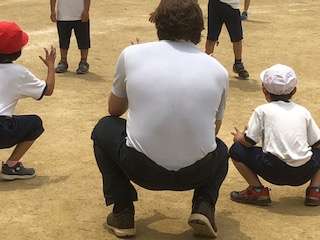 週一回、外国語担当の先生が大隅西小学校に来られます。今日は休み時間に1年生とすごされました。子どもたちは大喜びです。