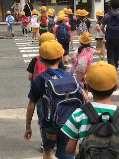 3年生が東淀川図書館見学に出発します。バスで行きます。