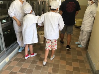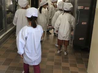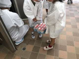 給食室に給食を取りに行きます