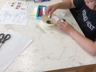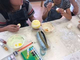 食べ物をイメージして作っていきます。今日は色を塗りました。