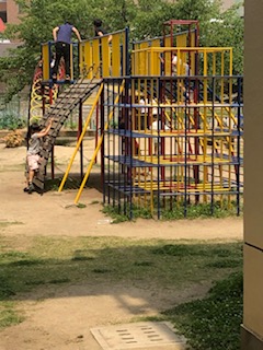 昼休みには暑い中でもたくさんの子どもたちが元気に遊んでいます。