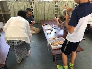 老人会の方々から昔の遊びを教えていただいています。