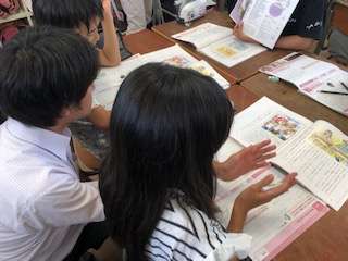 グループになってそれぞれの考えを交換しています。