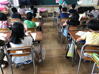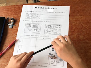 栄養教諭の授業で朝食の大切さを学んでいます。