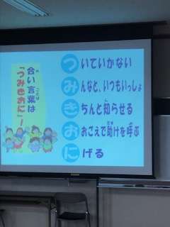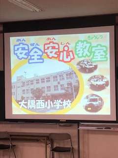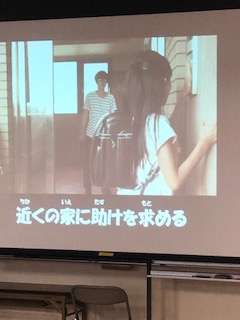 区役所の方から安全安心教室で身を守ることについて教えていただきました。身を守るための合言葉「つみきおに」の意味も説明されて安全への意識を高めることができました。