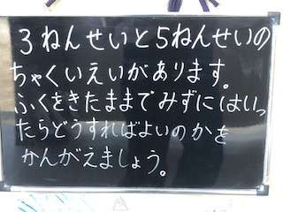服を着たまま、水に入った時にどうするかをプールで学びました。