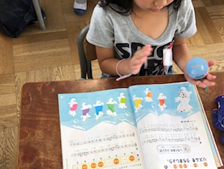 音楽に合わせて手拍子を打ったり、カスタネットをたたいたりして音楽を楽しんでいました。