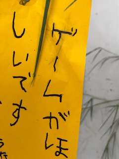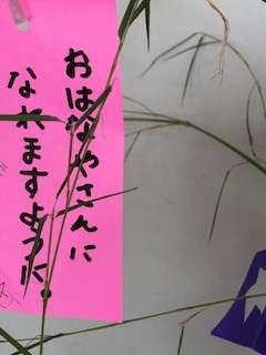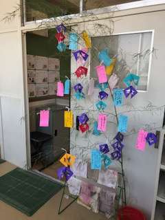 瑞光幼稚園からいただいた笹に1年生も願いごとを書きました。