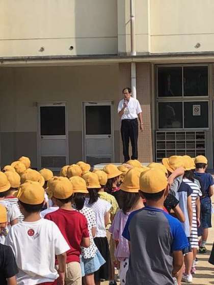 今日の朝会では、見守るデーに合わせて、登下校の安全について校長先生からお話がありました。