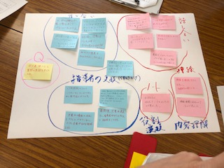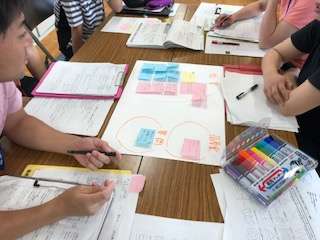 研究授業の後、多目的室に教員が集まって研究討議を行いました。