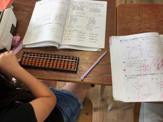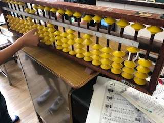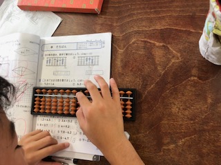 算数でそろばんを学んでいます。玉の置き方を練習しています。