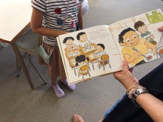 学校図書館補助員の方や図書担当の教員が本の読み聞かせや紹介などをして読書活動の活性化を図っています。