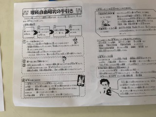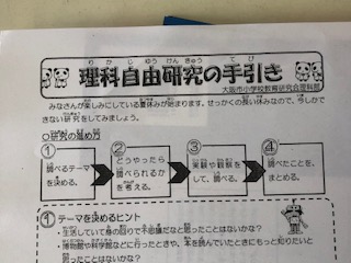 理科の自由研究の手引きを配りました。子どもたちが夏休みに理科の自由研究にしっかりと取り組んでほしいと願っています。
