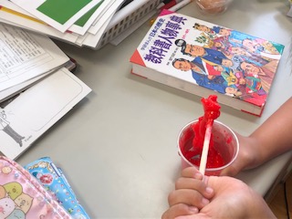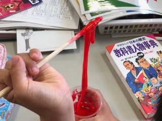 スライムを作ってゆっくりと伸ばしていきます。とても長く伸ばせました。