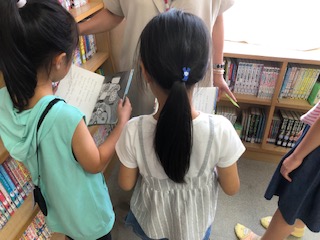 学校図書館には休み時間にたくさん子どもたちが集まってきてお気に入りの本を手にしています。