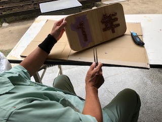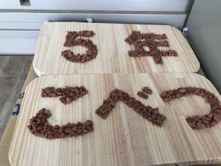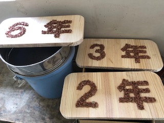 破損した植木鉢を活用して学習園の学年ごとの表示プレートを作成しています。