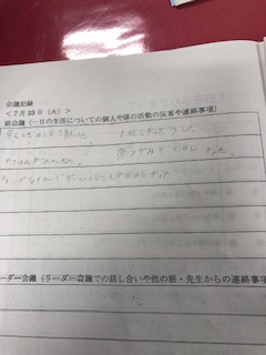 しおりには今日の出来事や楽しかったこと、反省することなどが書かれています。