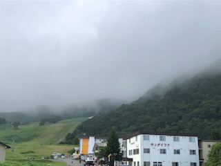 4時の高原の様子です。雲がとても多くなってきました。昼食作りの最中に大雨が降りました。子どもたちは屋根のある炊さん場にいたので雨にはかかりませんでした。