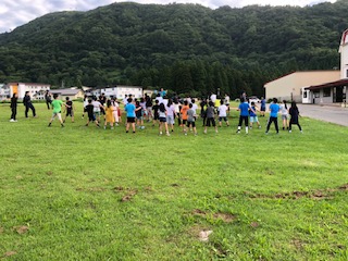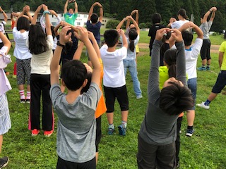 林間指導 3日目 朝の会 全員元気です