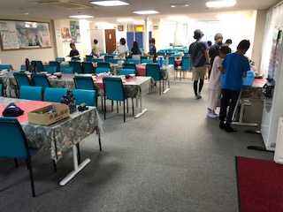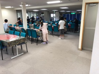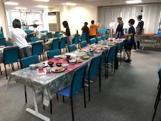 食事係が朝食の準備をしています。もう慣れたものです。手際よく進みます。