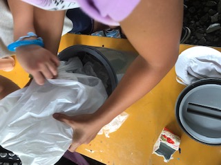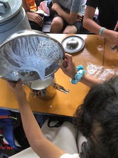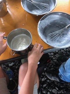 金属の容器にがんばってかき混ぜたアイスクリームのもとを入れます。