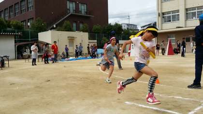 最終種目のリレーです。勝負ごとになると超真剣ですね。