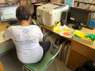 今日は地域の方が図書館を開放されています。8月1日のおりがみ教室の準備も進められています。