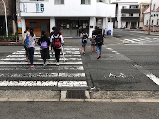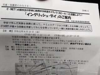 今日は大阪市の外国語の体験活動のイングリッシュ・デイです。希望した子どもたちが朝8時に学校を出発して会場へ向かいました。