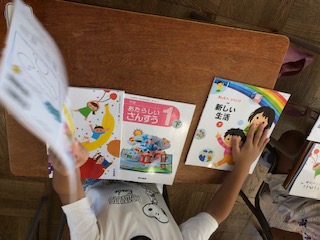 後期分の教科書が配布されました。子どもたちは、ページをめくって興味津々です。