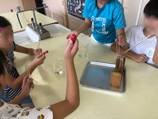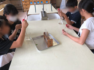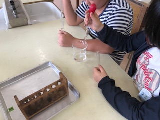 6年生は水よう液の学習で薬品を使います。今日は水で用具の使い方を学びました。安全な実験ができるように段階的に指導をしています。