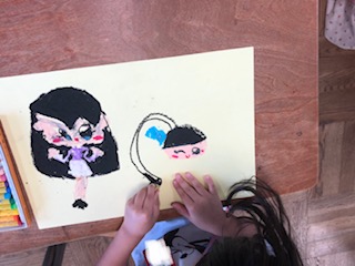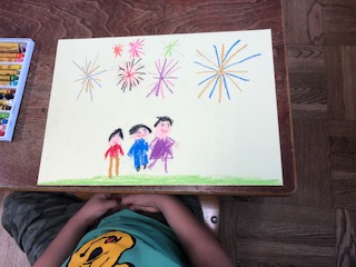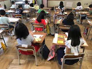 1年生は夏休みの思い出を絵に描いています。楽しかった夏休みがうかがえます。