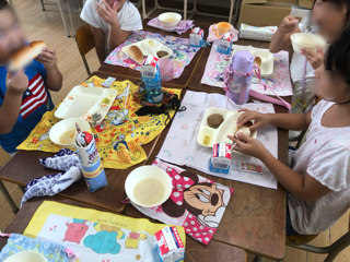 2年生の給食の時間には図書館補助員の方も子どもたちと一緒に給食を食べました。クラス全体がなごやかな雰囲気で給食の時間を過ごしています。今日はハンバーグが人気でした。