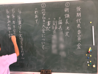 後期の代表委員会を行いました。新しい議長を決めて、つなひき大会などについて話し合いました。