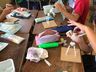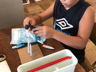 芯材で作りたいポーズを作った上で粘土で形を整えていきます。学年でテーマを決めて取り組んでいます。さて、何が作られていくのでしょうか?