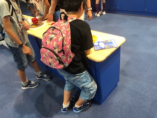 サイエンスショーの後は班ごとに展示を見学していきます。リニューアルされたばかりで最新の科学がわかるように展示が工夫されています。