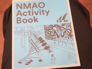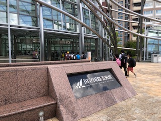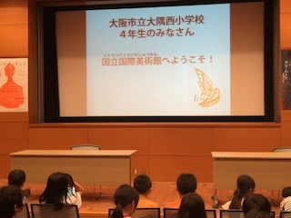 国立国際美術館に入ります。まず、説明を聞きました。子どもたち全員に見学学習のためのノートが渡されました。