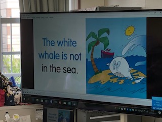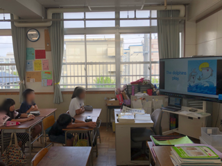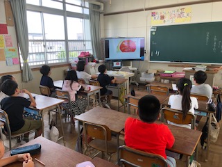 朝の英語タイムです。5年生では英語の文章としても学習しています。