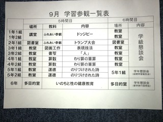学習参観 9月11日(水) 学校公開