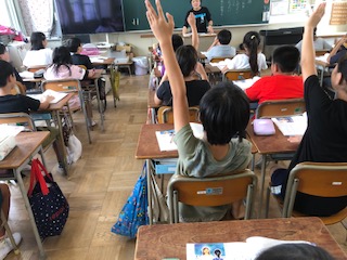 道徳の授業をする行いました。発表したり、ノートに書いたりしながら、考えを深めていきました、