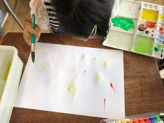 絵の具を使って表現しています。絵の具の使い方にも慣れてきました。
