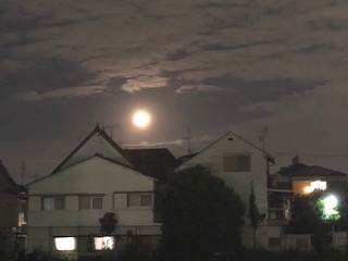 昨日(9月13日)は中秋の月(十五夜の月)でしたが、月の満ち欠けで見ると、今日(14日)が満月となります。写真は午後7時15分に撮影したものです。