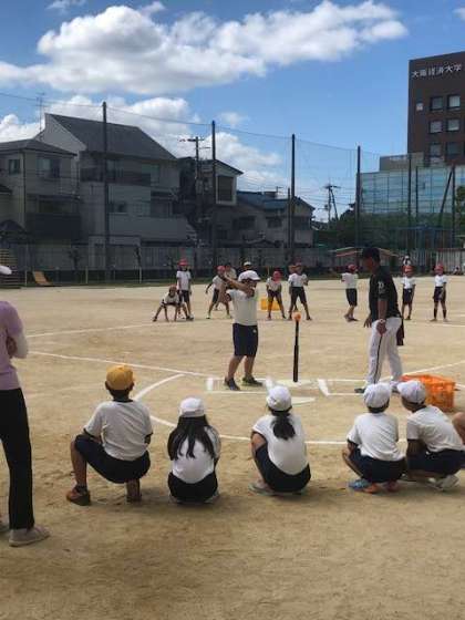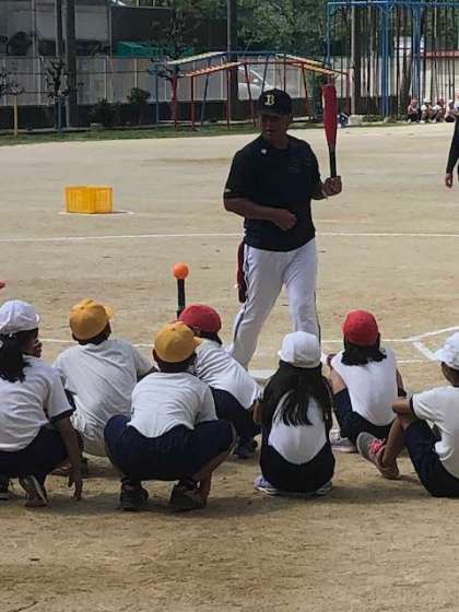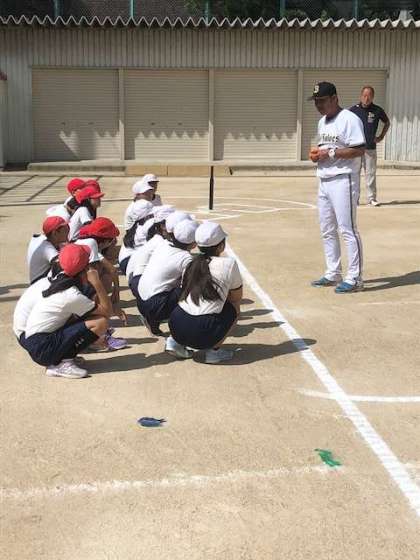 今日はオリックス・バファローズから少年少女野球教室のコーチが学校に来られました。4年生に野球の基礎基本を教えてくださいました。「投げる」「受ける」「打つ」をわかりやすく、ていねいに教えてくださりました。