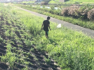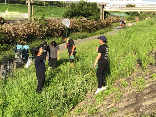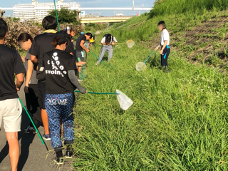 神崎川に移動して虫を探しました。たくさんの昆虫がいて、網や手でとりました。