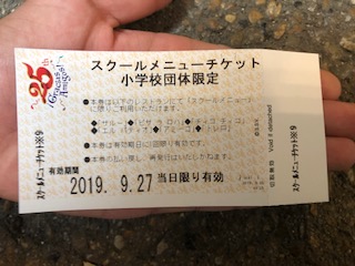 9時30分の入場まで待ちます。子どもたちにはパンフレットとランチのチケットが配られています。昼食はスペイン村の中でとります。
