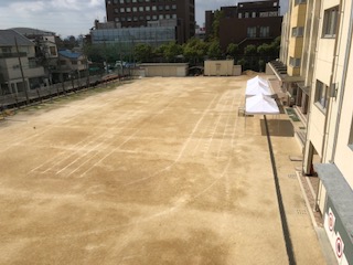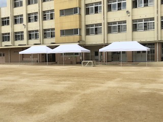 小松小学校の運動会で使用したテントのうち、3張りをそのまま残しています。今度の日曜に行われる地域での敬愛体育大会で使用します。それまでは学校で日陰としても使っていきます。