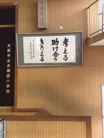 講堂天井工事のために取り外していた筆書の額を倉庫から取り出し、再び講堂舞台横に設置しました。