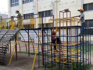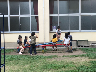 登校してからの子どもたちの様子です。運動場でも中庭でも友だちと遊んでいる姿が見られます。